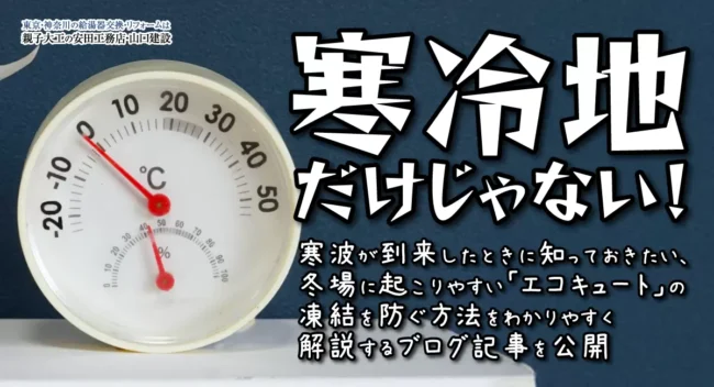 給湯器の交換やリフォームを手がける「親子大工」の(有)安田工務店は、家庭用給湯機器「エコキュート」の凍結防止策と正しい対処法を解説したブログ記事を、2026年1月7日に公式サイトで公開しました。